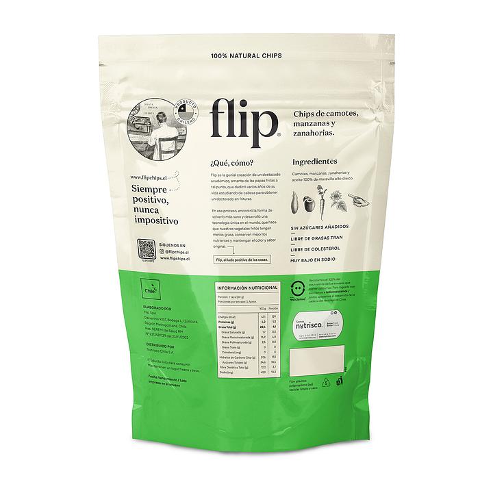 Chips de Camotes/Manzanas Verdes/Zanahorias con sal de Mar Flip 140Grs