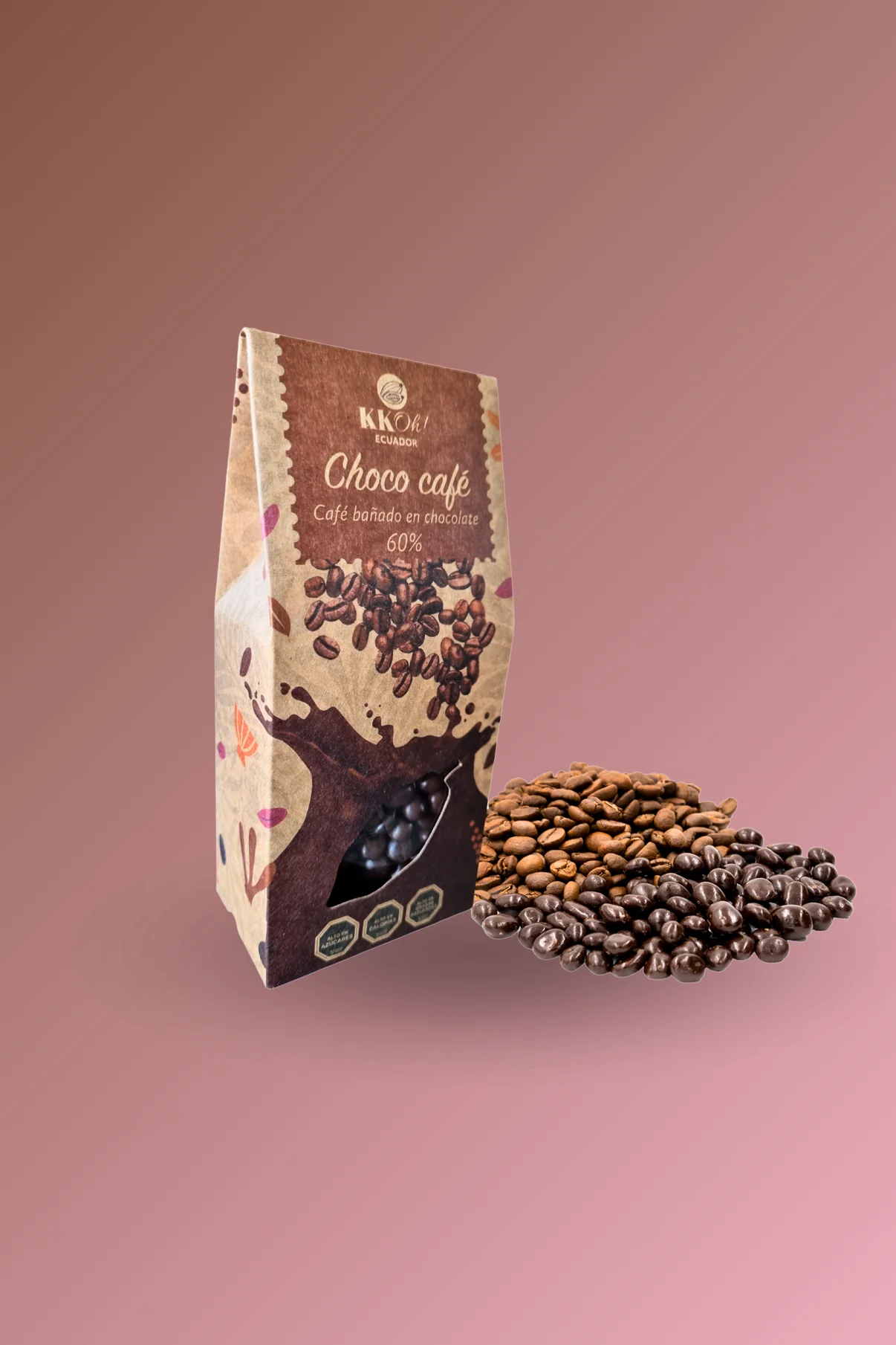 Granos de café cubiertos en chocolate 60% sin gluten, sin leche.