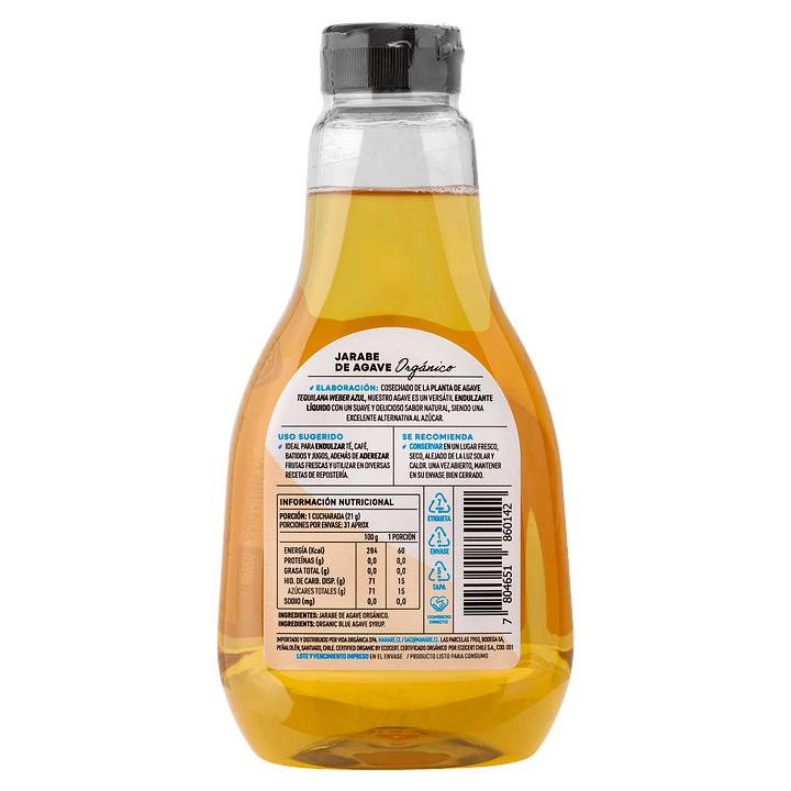 Jarabe de agave orgánico con bajo índice glicémico. Ideal para endulzar bebidas, postres y recetas saludables de manera natural.