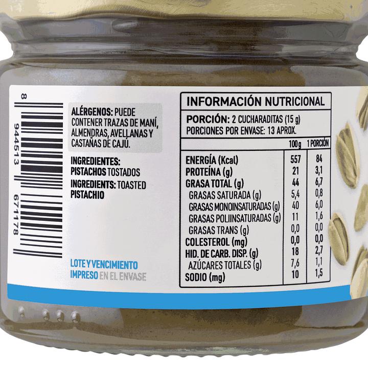 - Nuestra mantequilla de pistacho no tiene sal ni azúcar añadida, por lo que puedes incorporarla en recetas dulces o saladas sin alterar su sabor original.